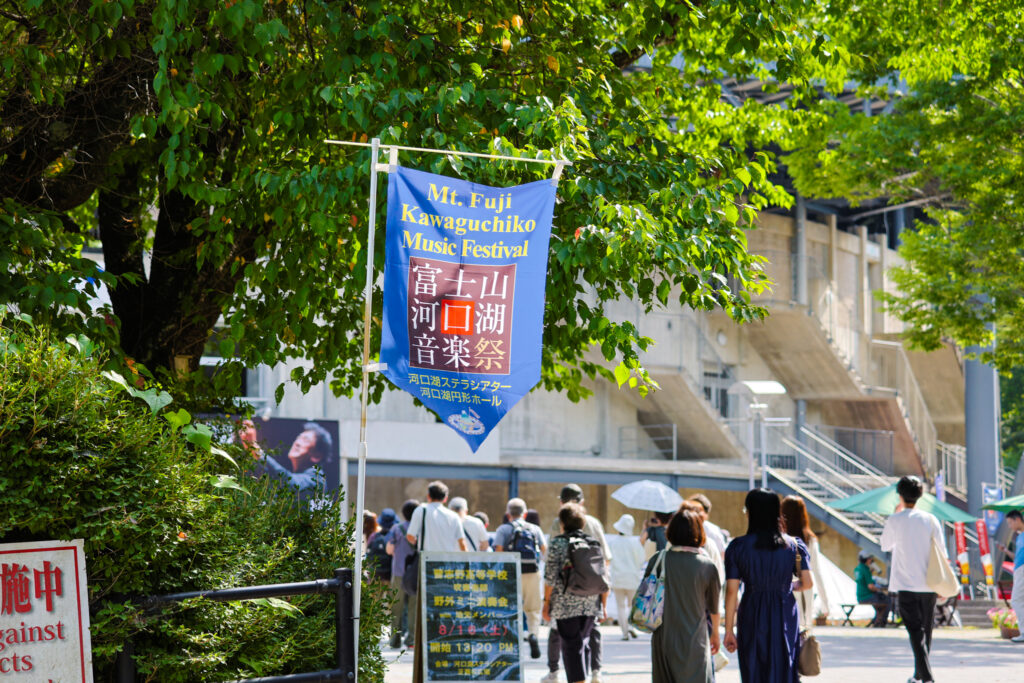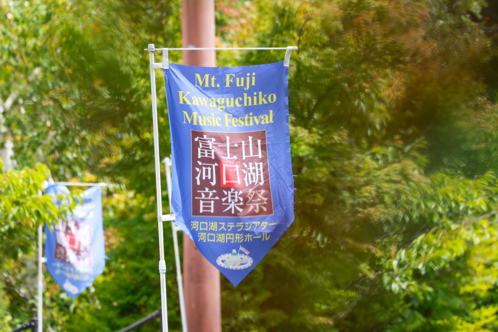 町の各所で「富士山河口湖音楽祭」ののぼりが飾られ、地域全体で音楽が響き渡っていました。